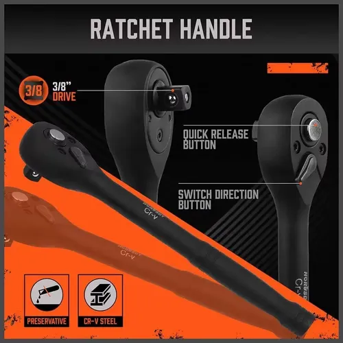 50PCS 3-8 Inch Dr. Pneumatic Impact Wrench With Set of Sockets Air Impact Sockets Set Socket Impact Wrench Set