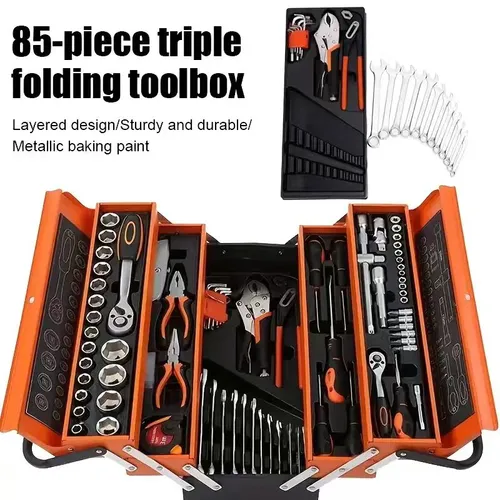 85-piece steam repair tool kit, iron box household tool box, folding three layers, hardware pliers set