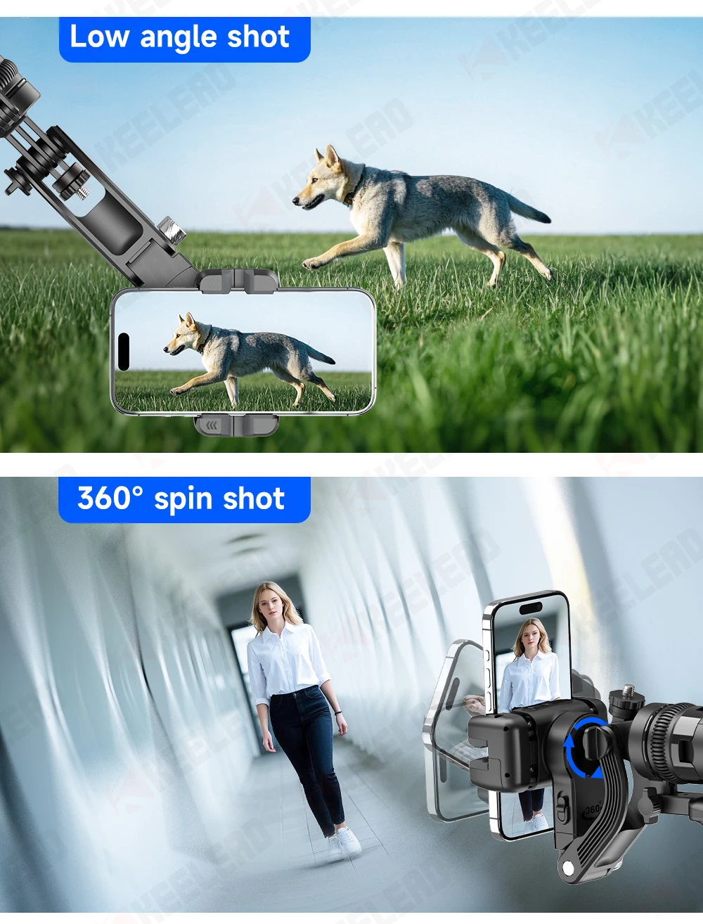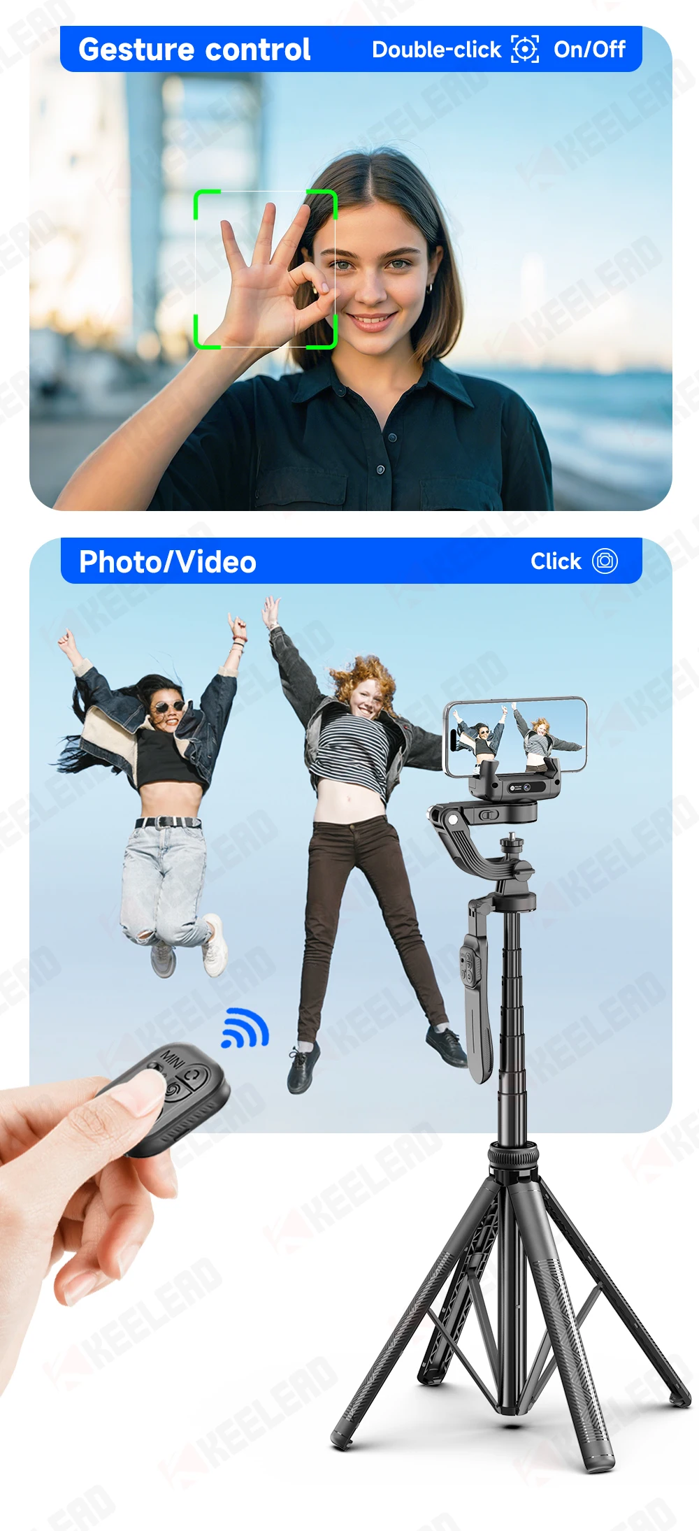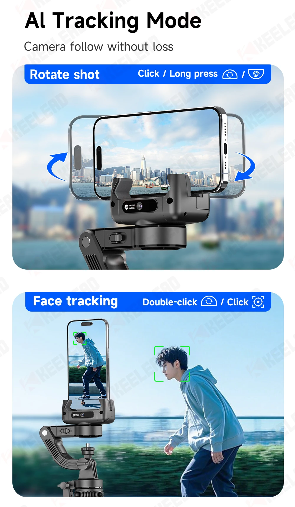 AI tracking gimbal stabilizer, tripod, and quadruple selfie stick