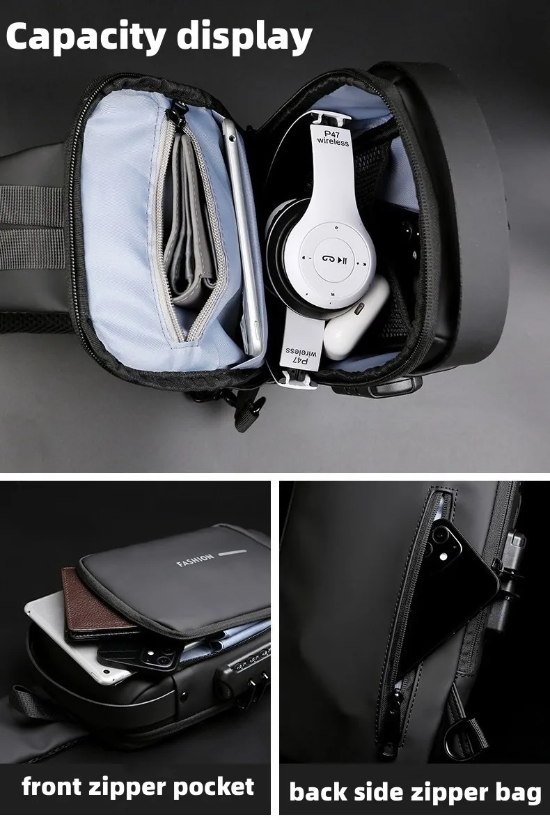 Carbon fiber streamlined anti-theft, USB charging sports waterproof anti-theft shoulder bag