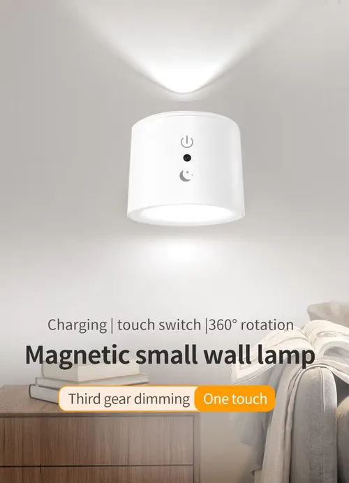 LED Rechargeable Magnetic Wall Lamp Dimmable 360 Degree Rotation Indoor with Remote Control